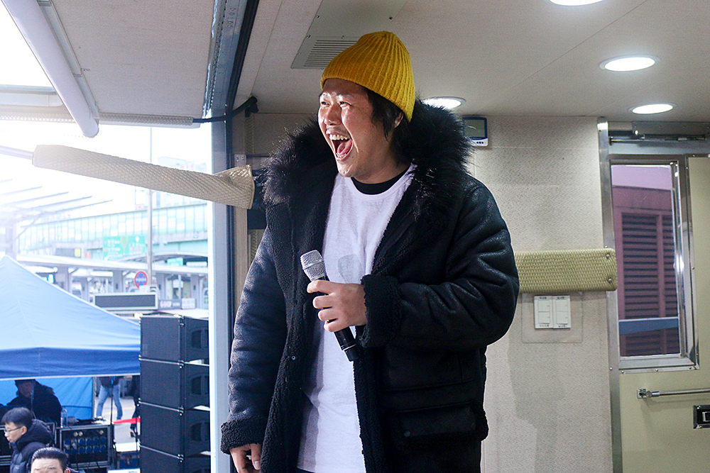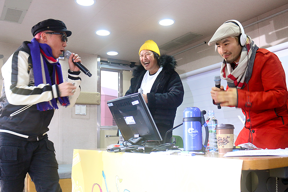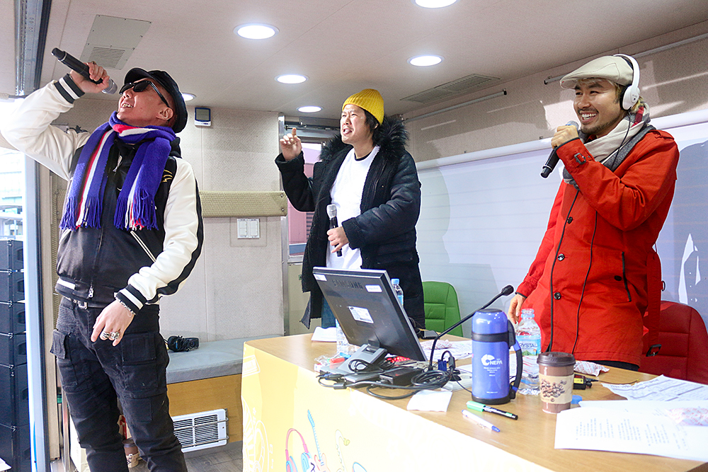 이어진 인터뷰에서 노홍철 디제이는 육중완, 이성우에게 "이 추운 날 이 시간에 길바닥에서 라이브해본 적 있느냐"고 물었고, 두 사람은 "돈 받으면 가는거죠"라며 재치 있게 받아쳤다.