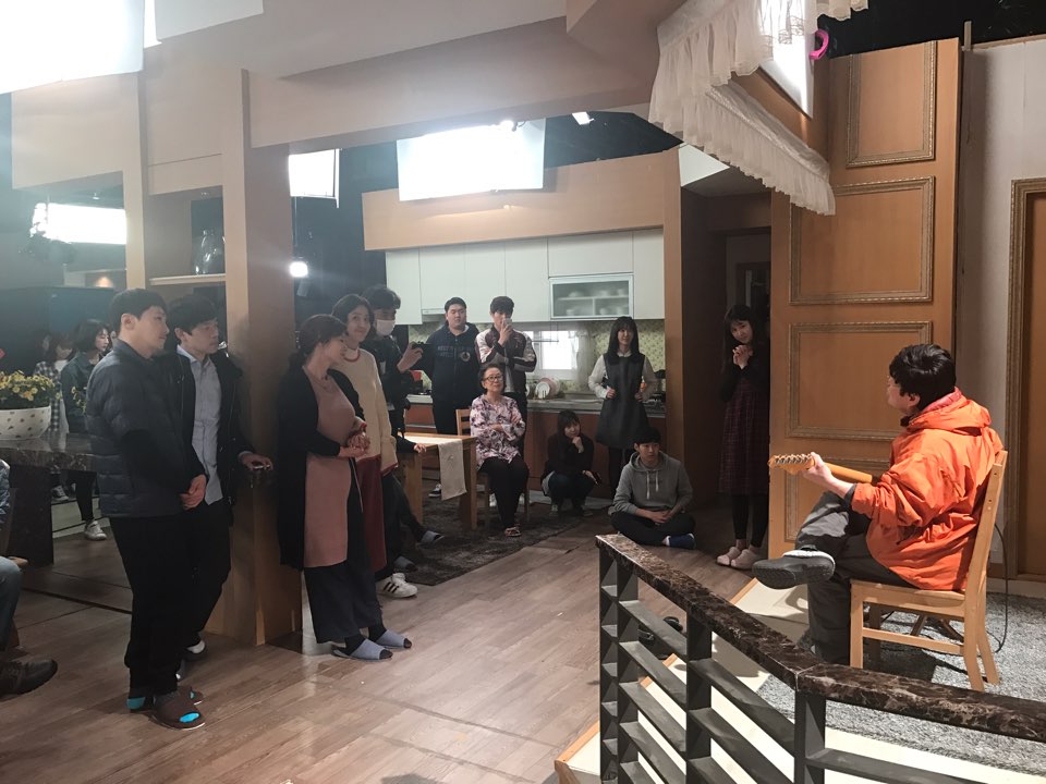 지난 3일 일산 드림센터 촬영현장에서 ‘아버님 제가 모실게요’의 김창완은 스태프들과 동료 배우들을 위해 만든 곡을 헌정하며 즉석 콘서트를 펼쳐 스튜디오에 모인 좌중에게 감동을 전했다.