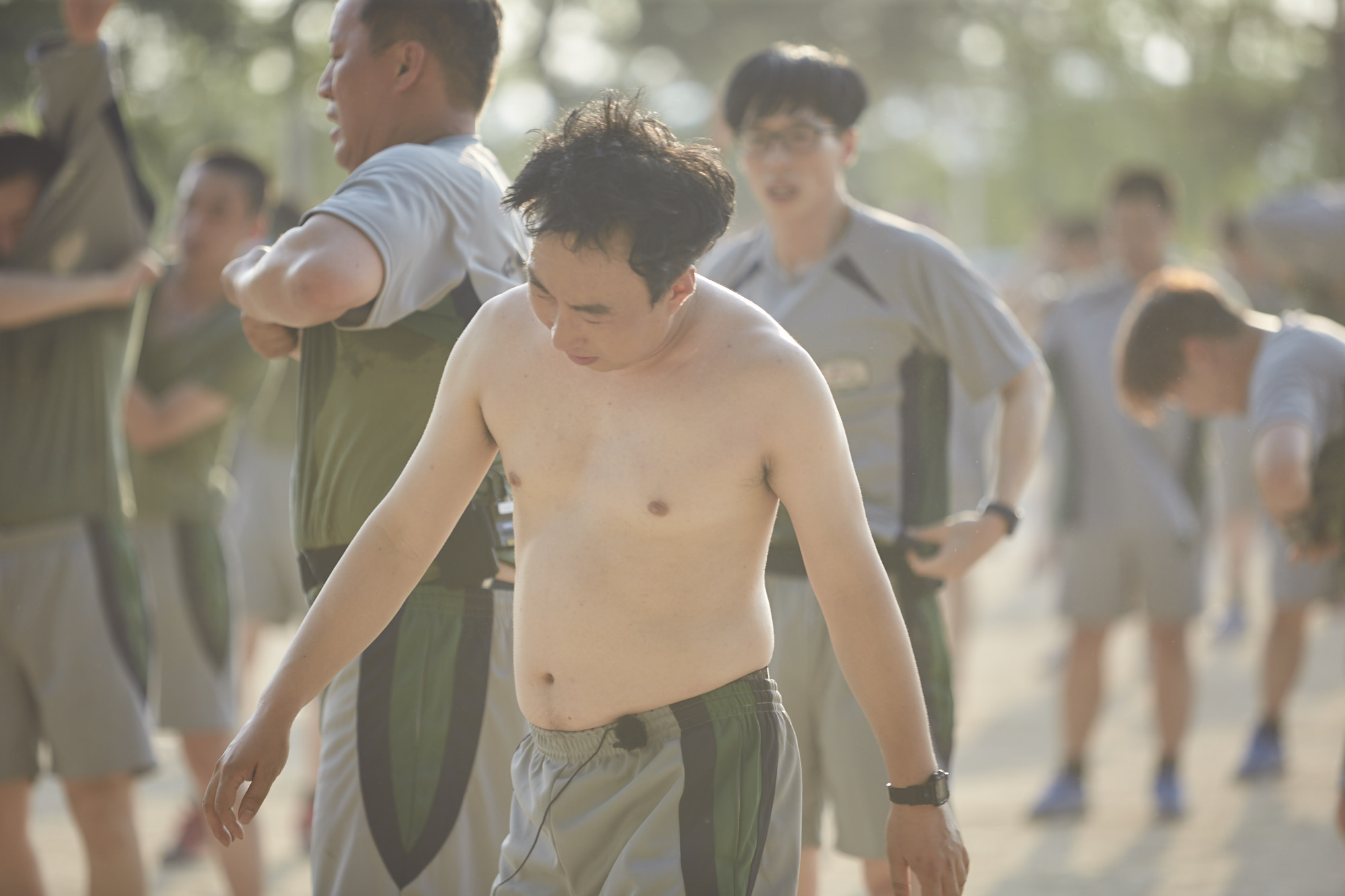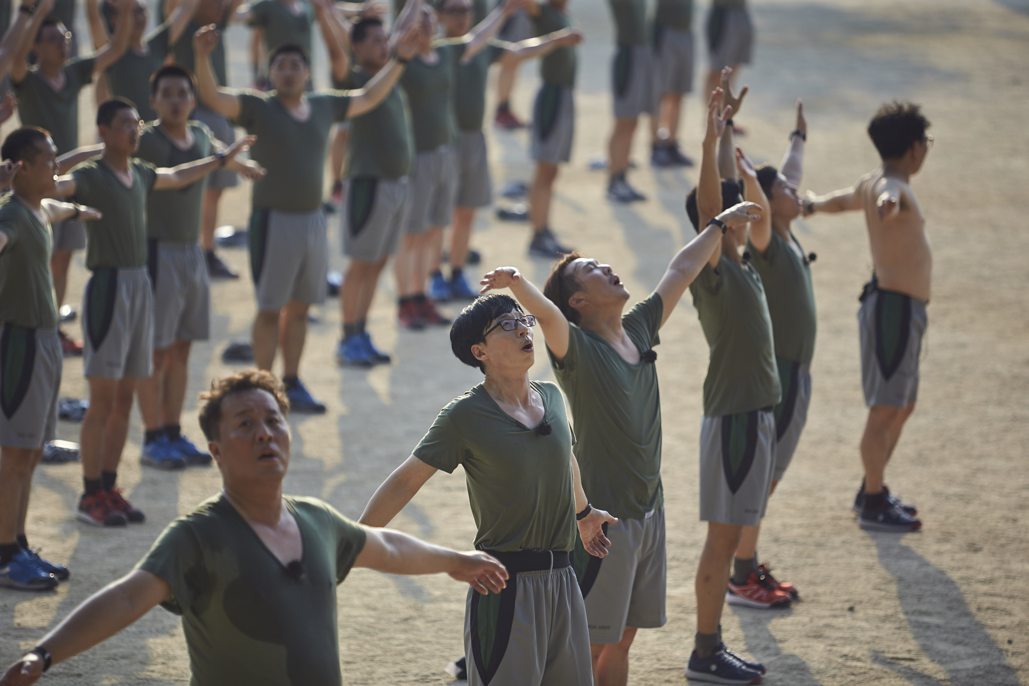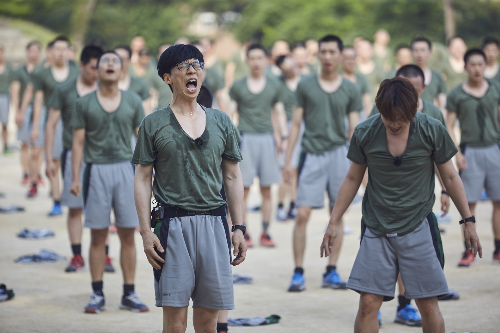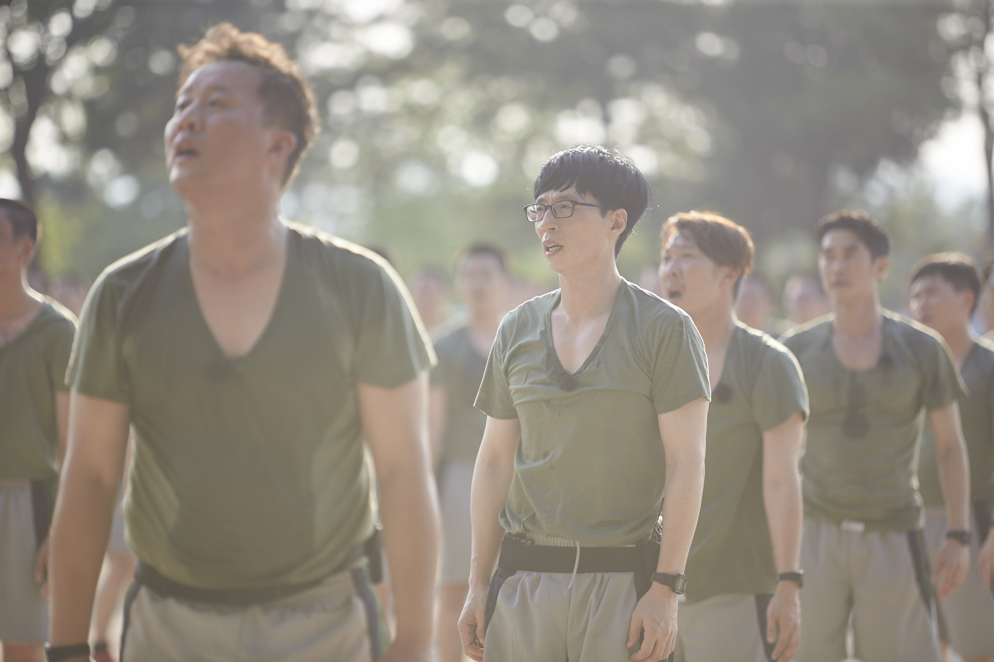 시도 때도 없이 웃음을 유발하는 ‘분대장’ 박명수의 실수는 훈련 중에도 멈추지 않았다. 모두 러닝셔츠를 입고 달리기를 할 때 혼자 맨 몸으로 뛰는가 하면 모두가 같은 방향으로 체조를 할 때 혼자만 반대방향으로 하는 등, 도저히 웃음을 참을 수 없게 만드는 박명수의 황당한 행동들은 방송을 통해 확인할 수 있다.