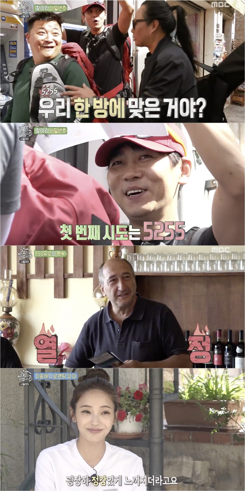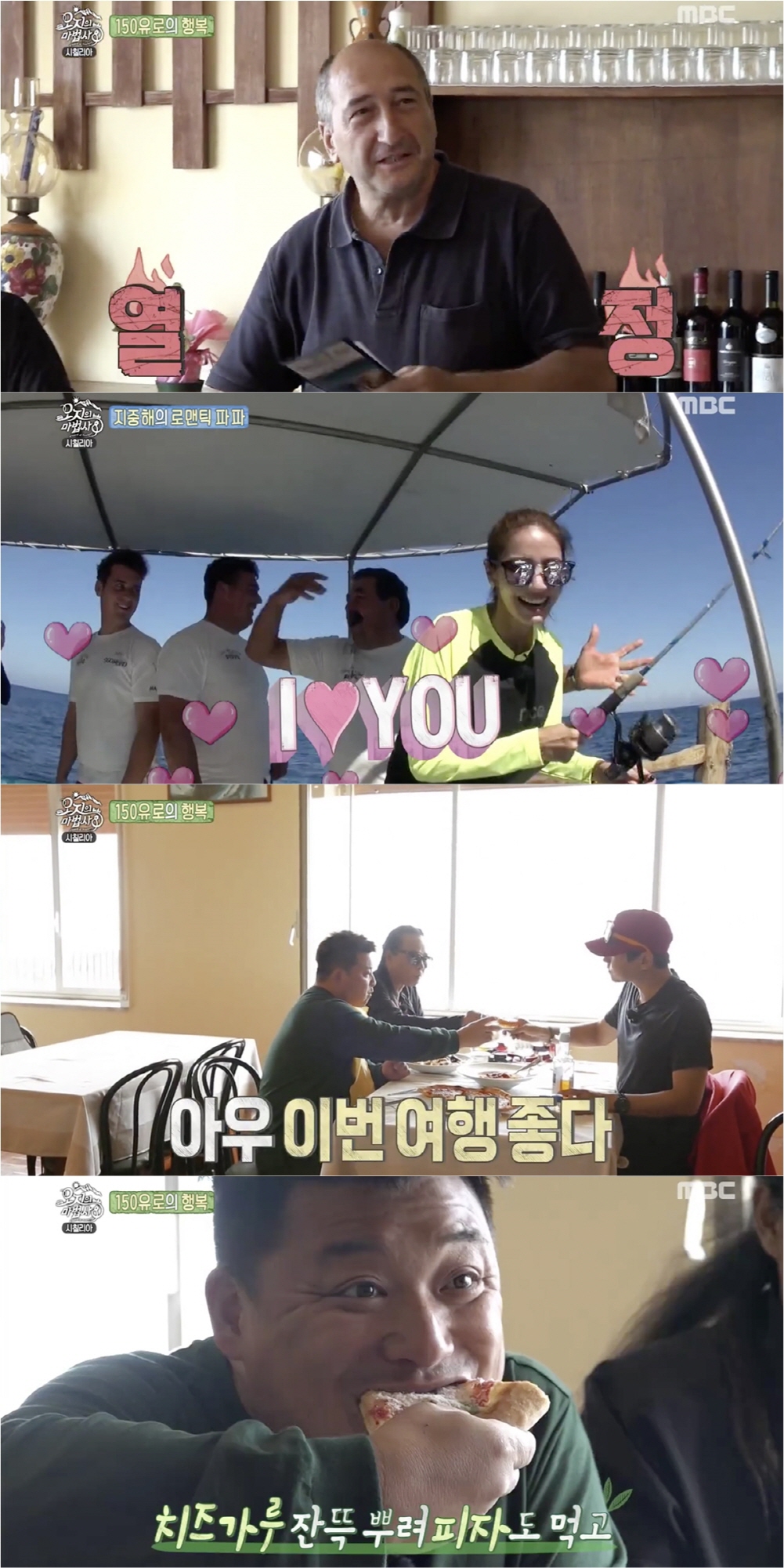 특히 뛰어난 풍광 말고도 꾸밈없는 시칠리아 사람들의 유쾌한 언변 역시 화제였다. 윤정수-김태원-최민용이 찾은 식당의 주인은 “돈이 없다”는 윤정수의 말에 “천천히 일해서 벌면 돼~”라는 낙천적인 조언을 곁들여 폭소를 자아냈고, 김수로-한채영-위너 진우가 만난 현지 어부 3부자는 한채영에게 첫눈에 반한 듯 “뷰티풀~ 아이 러브 유!”라며 끊임없이 찬사를 늘어놓아 눈길을 끌었다.