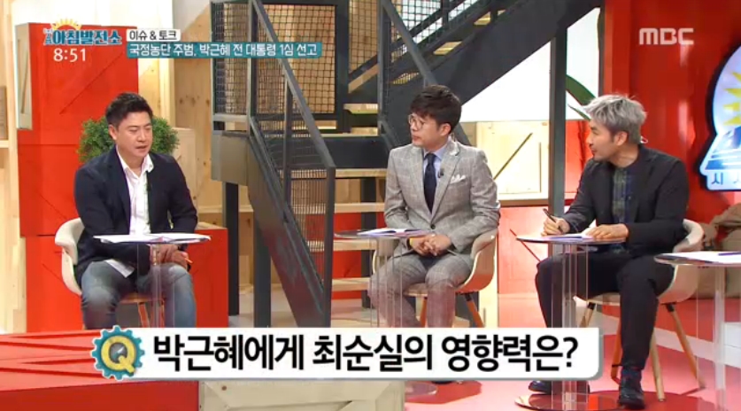 오늘 방송된 MBC '아침발전소'에서는 박근혜 전 대통령의 1심 선고 일을 맞아 최순실 국정 농단 사건을 폭로한 노승일 전 K스포츠재단 부장이 출연했다.