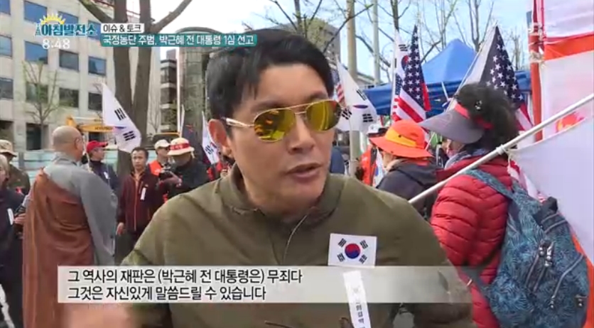 방송에서는 오늘 오후 2시에 있을 박근혜 전 대통령의 1심 선고공판을 앞둔 서울중앙지법 현장 모습도 전했다. 박 전 대통령의 지지자들은 지난 1일부터 중앙지법 앞에 천막을 치고 박 전 대통령의 무죄 석방을 위한 농성을 이어가고 있는 상황.