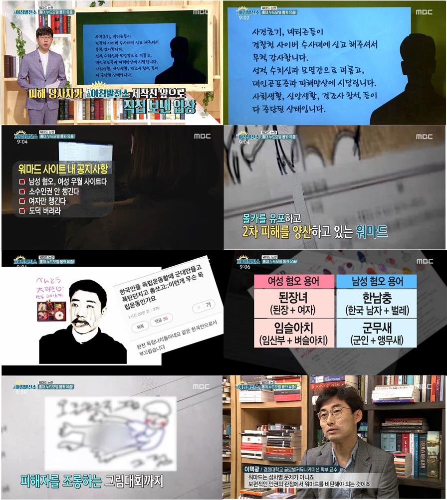 오늘 아침 방송된 MBC ‘아침발전소’(기획 이모현, 연출 김보슬)에서는 홍대 누드 몰카 유출 사건의 전말과 이를 둘러싼 ‘워마드’ 사이트 논란, 그리고 피해 당사자의 입장을 전격 공개하며 화제를 모았다.