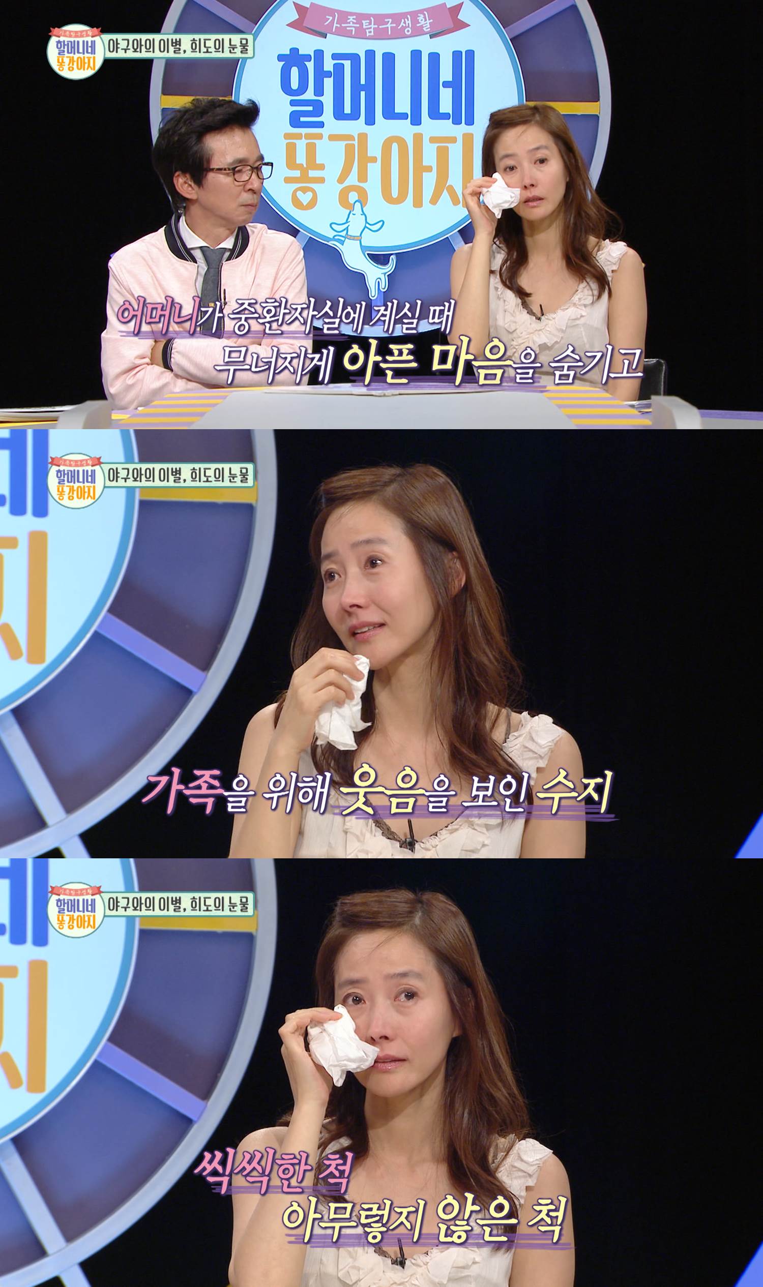 이에 강수지는 자신도 역시 희도처럼 가족을 위해 힘든 내색을 하지 않았던 경험을 이야기했다. 지난 2월 돌아가신 어머니가 중환자실에 계실 때 아픈 마음을 숨기고 힘들어하시는 아버지를 위해 억지로 웃음을 보이며 씩씩하게 버텼다며 눈물을 보인 것.