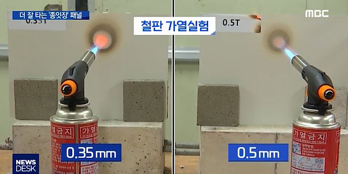 어제(26일) 방송된 뉴스데스크에서는 정부의 규정을 지키지 않은 부실 샌드위치 패널 실태를 단독으로 고발했다.