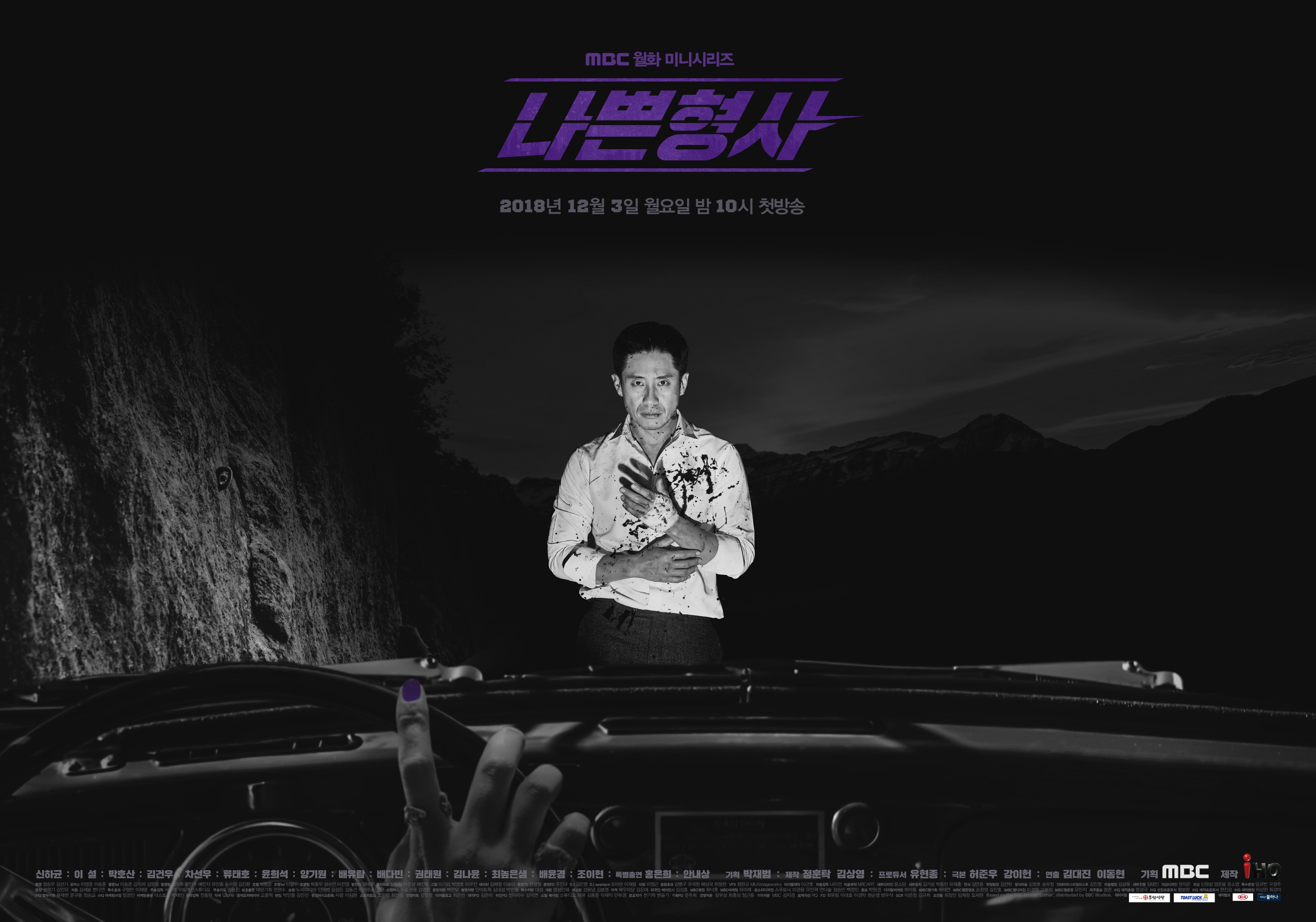 ★ 드라마 소개 ▶ 제목 : MBC 월화 미니시리즈 ‘나쁜형사’ ▶제작 : 32부작 / Less than Evil ▶ 첫 방송 : 2018년 12월 3일(월) 밤 10시 / 2회 연속 방송 *매주 월화 밤 10시 방송 ▶ 극본 : 허준우, 강이헌 ▶ 연출 : 김대진 이동현 ▶ 프로듀서 : 유현종 ▶ 출연 : 신하균, 이설, 박호산, 김건우, 차선우, 류태호, 윤희석, 양기원, 배유람, 배다빈, 권태원, 김나윤, 최높은샘, 배윤경, 조이현, 특별출연 홍은희, 안내상 ▶ 기획 : 박재범 ▶ 제작 : 정훈탁, 김상영 ▶ 원작 : 英 BBC ‘루터(Luther)’ *Based on the BBC format ‘Luther’, distributed by BBC Studios ★ 제작진 소개 ▶ 연출 : 김대진 <황금주머니> <호텔킹> <오늘만 같아라> <살맛납니다> <내 인생의 황금기> <옥션하우스> <사랑은 아무도 못말려> 등 연출 이동현 ▶ 극본 : 허준우, 강이헌 ▶ 제작 : iHQ <당신이 잠든 사이에> <뿌리 깊은 나무> <아버지가 이상해> <함부로 애틋하게><피도키오> <세상 어디에도 없는 착한남자> 등★ 기획의도연쇄 살인범보다 더 독한 형사와 연쇄 살인범보다 더 위험한 천재 사이코패스의 아슬아슬한 공조 수사를 그린 새로운 스타일의 범죄수사 드라마 #나쁜형사, ‘정의’를 ‘정의’하다!정의(Justice) 실현의 가장 큰 어려움은 정의를 정의(Define) 하기 어렵다는 것이다. 만약 눈앞에 아동 납치 용의자가 있고, 피해자 아동은 납치되어 사라진 상태라면?무슨 짓을 해서라도 피해 아동을 구해야 할까?만에 하나 억울할 수도 있는 용의자를 위해 절차를 지켜야 할까? 다시 묻는다.피해 아동이 당신의 아이라면? 그래도 절차를 지켜야 한다고 말할 수 있을까?만약, 당신이라면, 어떤 선택을 할 것 인가?여기, ‘나쁜형사’는 우리 사회가 생각해 봐야 할 다양한 정의를 묻는다. #나쁜형사, ‘뻔한’ 형사를 거부하다!오랜 잠복과 현장 근무로 헝클어진 머리와 몸에 밴 땀 냄새 언제라도 뛸 준비가 되어 있는 점퍼와 운동화. 지금까지 한국에서 보여진 형사 캐릭터와 우태석은 스타일부터 다르다. 깔끔한 셔츠에 보디라인을 따라 딱 떨어지는 슈트를 입고 현장을 누빈다. 우태석은 몸이 마음을 만들고 옷이 사람을 만든다고 믿기 때문에 슈트를 고집한다. 형사도 옷을 갖춰 입어야 젠틀한 태도를 몸에 익히고, 그래야 세상도 형사를 존중할 수 있다고 태석은 믿는다. #나쁜 형사, 매혹적인 사이코패스와 만나다!교묘하게 법망을 피해 가는 범인을 무슨 짓을 해서라도 잡고 싶어 하는 우태석법의 경계를 아슬아슬하게 넘나들며 수사해온 우태석을 알아본 천재 사이코패스 은선재. 용서할 수 없는 범죄자들을 향한 주체할 수 없는 분노와 그들을 사적으로라도 처단하고픈 욕망에 시달리는 태석에게 선재의 부추김은 악마의 유혹이다. 과연, 태석은 선재라는 악마의 유혹을 뿌리치고 정의를 쫓는 형사로서 자신을 지킬 수 있을까?★ 이슈 포인트#평단과 시청자의 호평 받은 웰 메이드 드라마 英 ‘루터’, ‘나쁜형사’로 재탄생하다 19금 판정! 원작을 뛰어넘는 새로운 스타일의 범죄 수사 드라마의 탄생!2018년 대미를 장식할 MBC의 야심작 ‘나쁜형사’는 연쇄살인마보다 더 독한 형사와 연쇄살인마보다 더 위험한 천재 사이코패스의 아슬아슬한 공조 수사를 그린 범죄 드라마로 범죄 수사극 명작 중에 명작으로 꼽히는 영국 BBC의 ‘루터(Luther)’를 원작으로 하고 있다.MBC가 새롭게 선보이는 ‘나쁜형사’는 원작과 비교해 더 촘촘한 서사와 캐릭터들이 살아있는 것이 특징이다.여기에 지상파 드라마로는 드물게 첫 회가 19금 판정을 받을 만큼 극의 리얼리티와 긴장감이 극도가 되어 시청자의 시선을 사로잡을 것으로 기대된다. # 기승전 ‘신하균’! 믿고 볼 수밖에 없는 배우 신하균, 대체불가의 존재감!영화와 드라마를 넘나들며 대체불가의 존재감을 발휘하고 있는 명품 배우 신하균!2년 여 만에 브라운관 복귀작으로 ‘나쁜형사’를 선택해 기대감을 수직 상승시키고 있다.신하균이 맡은 ‘우태석’은 범인을 잡기 위해서라면 그 어떤 불법도 마다하지 않는 나쁜 형사다. 법의 경계를 아슬아슬하게 넘나드는 수사방식으로 허구한 날 물의를 일으키지만 동시에 인간적인 매력도 지니고 있는 인물로 신하균 만의 깊이 있는 섬세한 감성과 치밀하고 예리한 연기력이 만나 어디에서도 볼 수 없는 독창적이고 입체적인 형사 캐릭터를 선보일 예정이다. 신하균이 선보이는 ‘우태석’은 원작 ‘루터’와는 다른 독창적인 매력으로 명불허전 ‘신하균 표’ 카리스마가 담긴 인생 캐릭터로 시청자를 찾을 예정이다.#호기심X매력 폭발! ‘화제 집중’ 기대주 + ‘내공 막강’ 명품 배우진의 환상적인 시너지! ‘나쁜형사’의 황금 캐스팅 라인업은 최고의 기대 포인트 중 하나다.믿고 보는 배우 신하균을 중심으로 대세 배우 박호산, 탄탄한 연기력의 홍은희를 비롯 해 300:1이라는 오디션 경쟁률을 뚫고 여주인공 자리를 당당히 꿰찬 괴물 신인 이설과 단 세 작품 만에 신하균과 어깨를 나란히 하는 주연으로 등극한 신예 배우 김건우,다양한 작품에서 진정성 있는 연기로 가수에서 배우로 성공적인 변신을 이룬 차선우,신선한 마스크로 각종 CF는 물론, 배우로서 필모그래피를 쌓아가고 있는 배