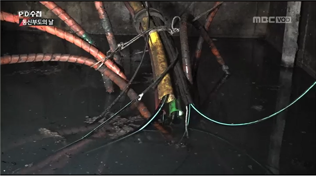 화재 발생 한 달이 훌쩍 넘긴 지금까지도 원인이 명확히 밝혀지지 않은 KT 통신구 화재사건은 아직도 복구가 진행 중이었다. PD수첩 제작진이 단독으로 입수한 화재가 발생한 통신구 내부 영상은 시청자들을 경악하게 했다. 거미줄처럼 얽혀있던 통신 케이블들은 화재로 곳곳에 들러붙어 있었고, 바닥엔 물이 흥건했다. 제작진이 직접 들어가 본 맨홀 내부는 충격적이었다. 허리까지 오물과 오수가 둥둥 떠다니고 있었고 통신선들은 곧 절단될 것 같이 위태로워보였다. 언제 어느 때 큰 사고로 이어질지 아무도 알 수 없는 상황이었다.