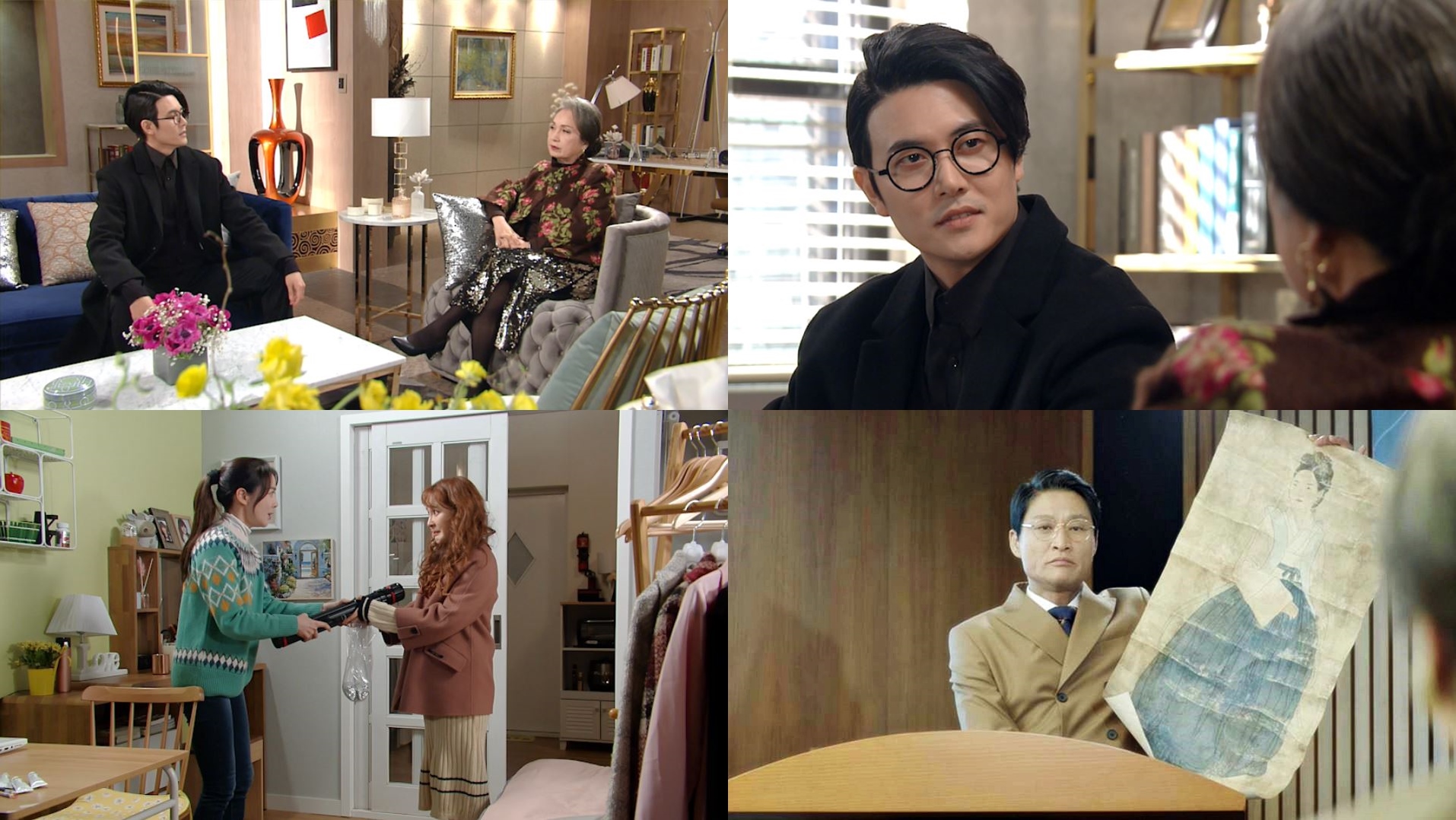 이소연의 양아버지 안내상(심학도 역)이 고려미인도 절도 및 훼손범으로 체포된 상황에서 아버지의 무고함을 증명하기 위해 훼손된 고려미인도가 위작이라는 이소연의 주장에 힘을 실어 주기 위해 지난 20년간 그토록 원망하며 한 번도 찾지 않은 할머니 오미연을 찾은 것이다.