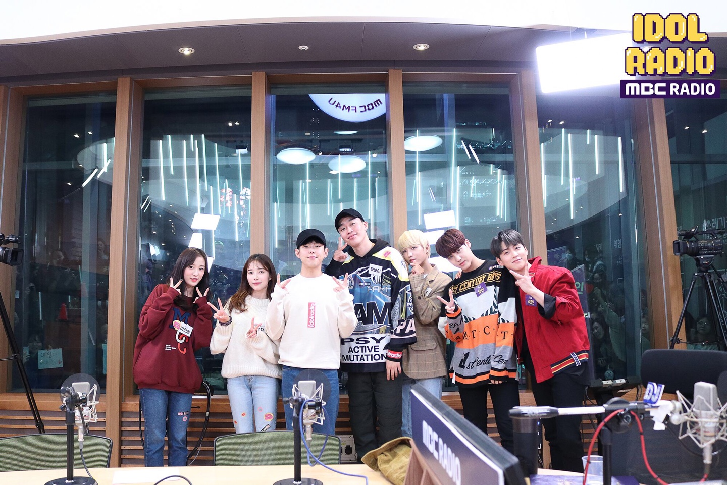 업텐션 선율, 에이프릴 윤채경·이진솔, 픽보이가 지난 18일 스페셜 DJ 김국헌·송유빈이 진행하는 MBC 표준FM ‘아이돌 라디오’에서 폴킴을 중심으로 한자리에 모였다.