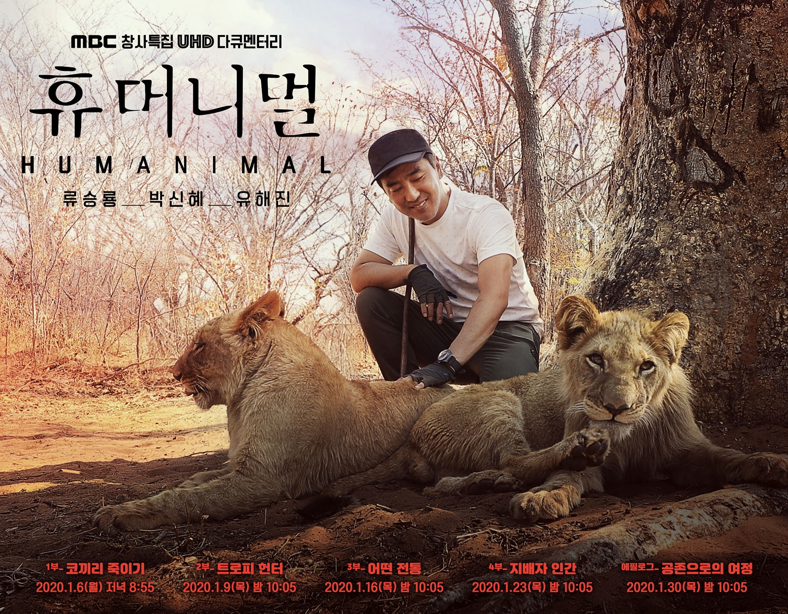 ‘휴머니멀’은 먼 이국땅의 이야기를 우리의 눈으로 직접 보고 전달하기 위해 국내 최고의 배우 류승룡, 박신혜, 유해진(가나다 순)을 프레젠터로 한 자리에 모았다. 영화에서도 한 자리에 모이기 힘든 스타들이 다큐멘터리 출연을 위해 의기투합해 더욱 눈길을 끈다.