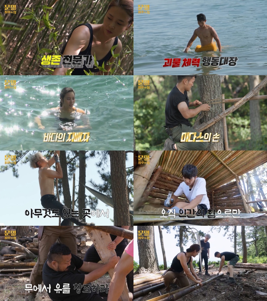 특히, 이들은 칼 한 자루, 정글도, 중식도, 도끼, 수경 등 각자 개성에 맞춘 단 하나의 생존 도구를 활용해 10일간 생활할 예정이다. 뿐만 아니라 공동체를 이끌어 갈 리더를 뽑고, 하루를 보낼 셸터 제작, 식량 찾기 등 8월의 여름 폭염 속에서 생명을 유지하기 위해 고군분투하는 가운데 폭우가 내려 패닉에 빠지게 되었다는 후문. 별안간 태풍 속에서 하룻밤을 지내야 하는 생존자들은 무사히 살아남을 수 있을지 3일(금) ‘문명’에서 공개된다.