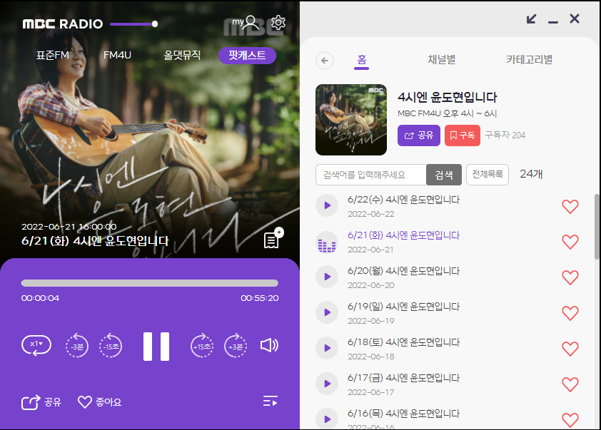 최근 관심이 높아진 팟캐스트 서비스도 대폭 개선됐다. <이진우의 손에 잡히는 경제>, <시선집중>, <여성시대> 등 장수 프로그램이 많은 MBC라디오인 만큼, 오랜 시간 누적된 에피소드 중 청취자가 희망하는 에피소드를 쉽게 찾아들을 수 있도록 키워드검색 기능을 추가했다. 또한 청취자가 원하는 속도로 배속을 조정, 원하는 구간으로 빠르게 이동할 수 있는 15초, 30초 전후 구간 이동 기능, 최근 청취한 에피소드 목록을 제공하는 등 플레이어 내 편의기능과 개인화 기능을 추가해 청취에 편리함을 더한 점도 눈에 띈다.