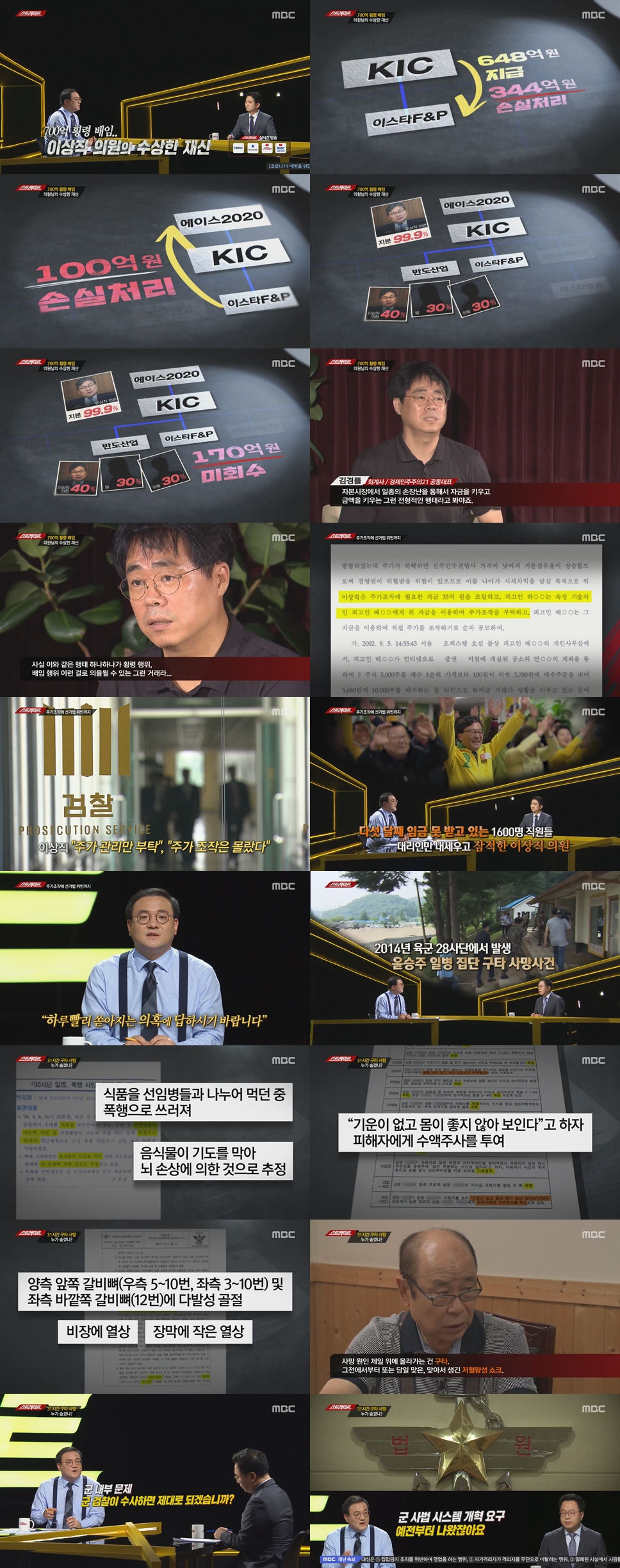 탐사기획 [스트레이트] ‘700억 횡령 배임, 이상직 의원의 수상한 재산’...’윤일병 죽음의 진실, 누가 숨겼나?‘ |