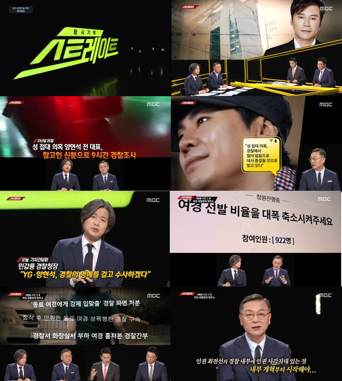 [스트레이트] 대한민국 여성 경찰관의 현실 전하며 분당최고시청률 5.2% 기록, YG의 성접대 의혹 전한 지난주 방송은 화제성 급상승! |