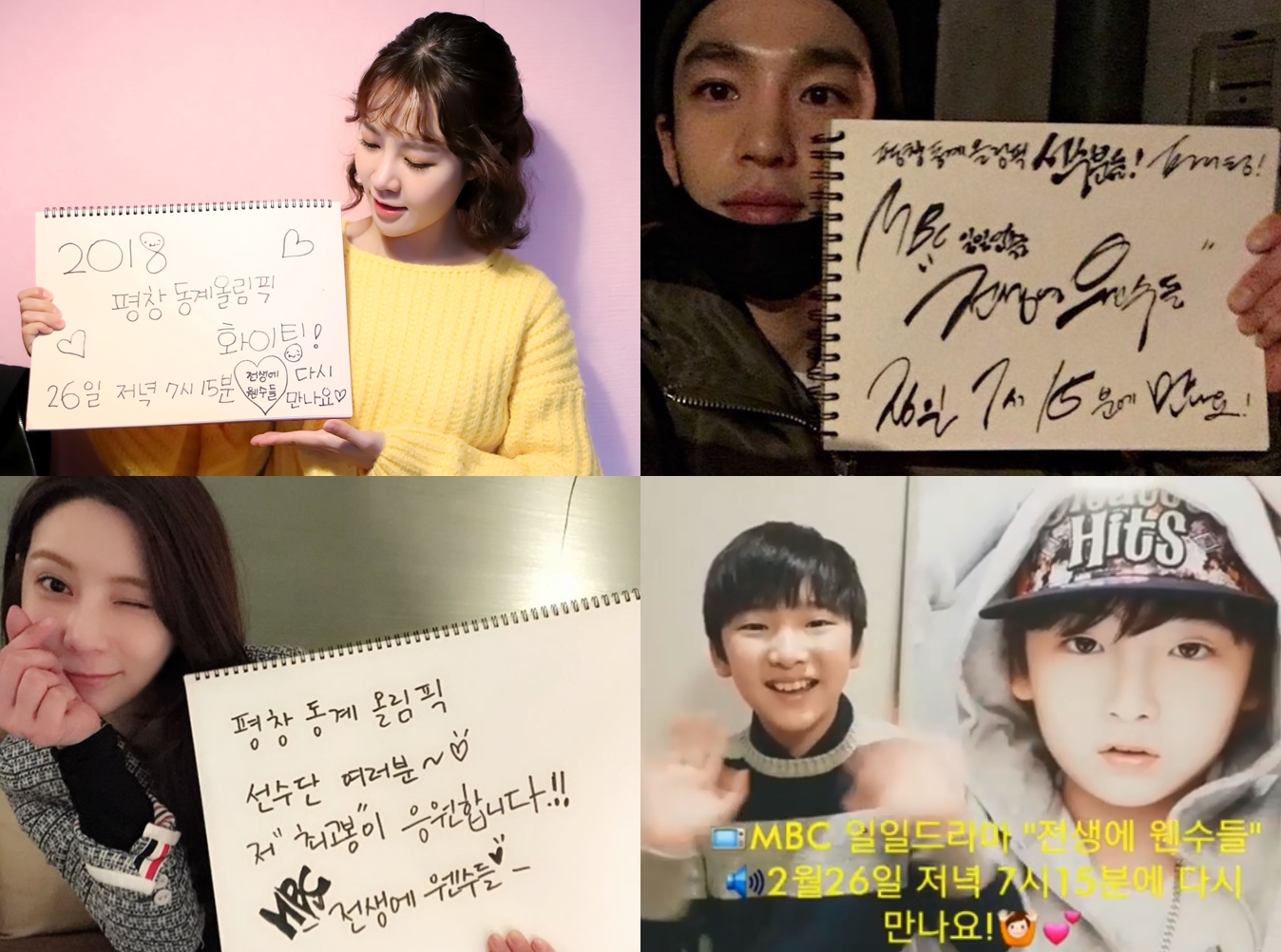 26일 방송 재개 앞둔 [전생에 웬수들] 팀, “평창동계올림픽 선수단 끝까지 파이팅!” 정성 가득 손글씨+영상 응원 릴레이 |