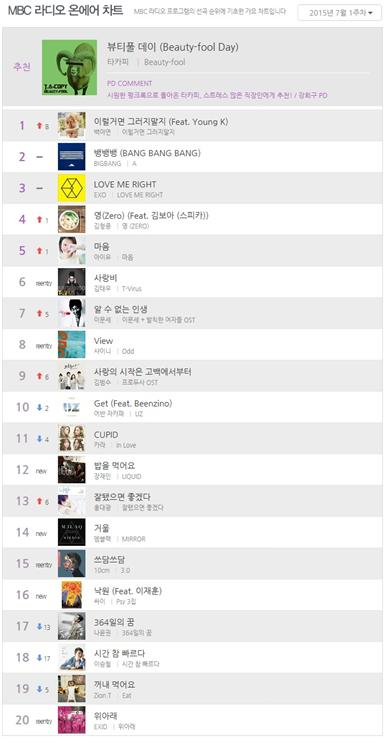 [MBC 라디오 온에어 차트] 7월 1주차, 차트 ‘역주행 여신’ 백아연 라디오에서도 1위! |