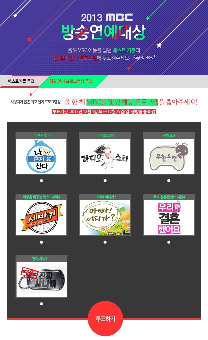 [2013 MBC 방송연예대상] 2013년을 빛낸 MBC 예능 프로그램, 시청자가 직접 뽑는다! |