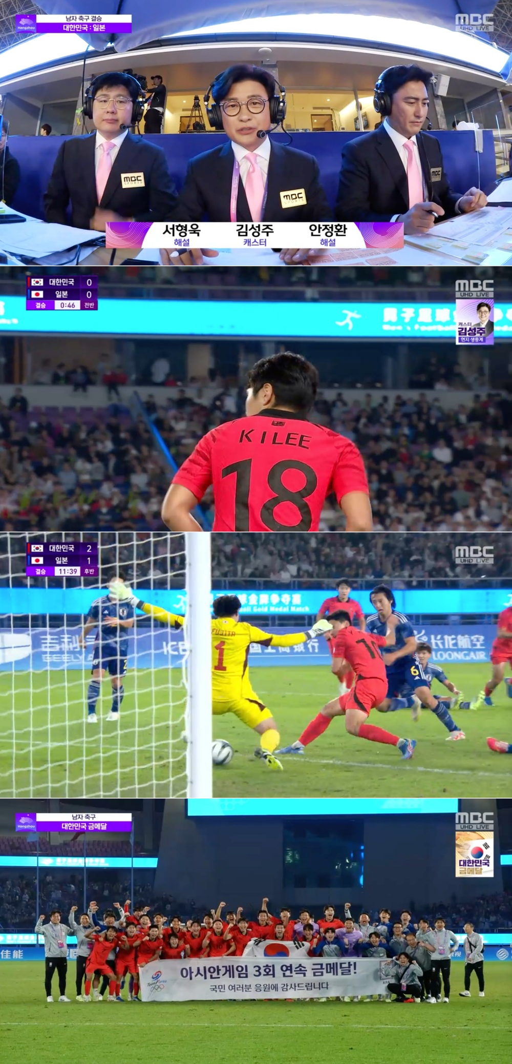 [제19회 항저우 아시안게임] 남자 축구 대표팀 금메달 약속 지켰다! 일본 꺾고 대회 3연패 달성! MBC 안정환 “역사를 썼다. 아시아의 강호라는 것을 확실하게 증명한 자리” |