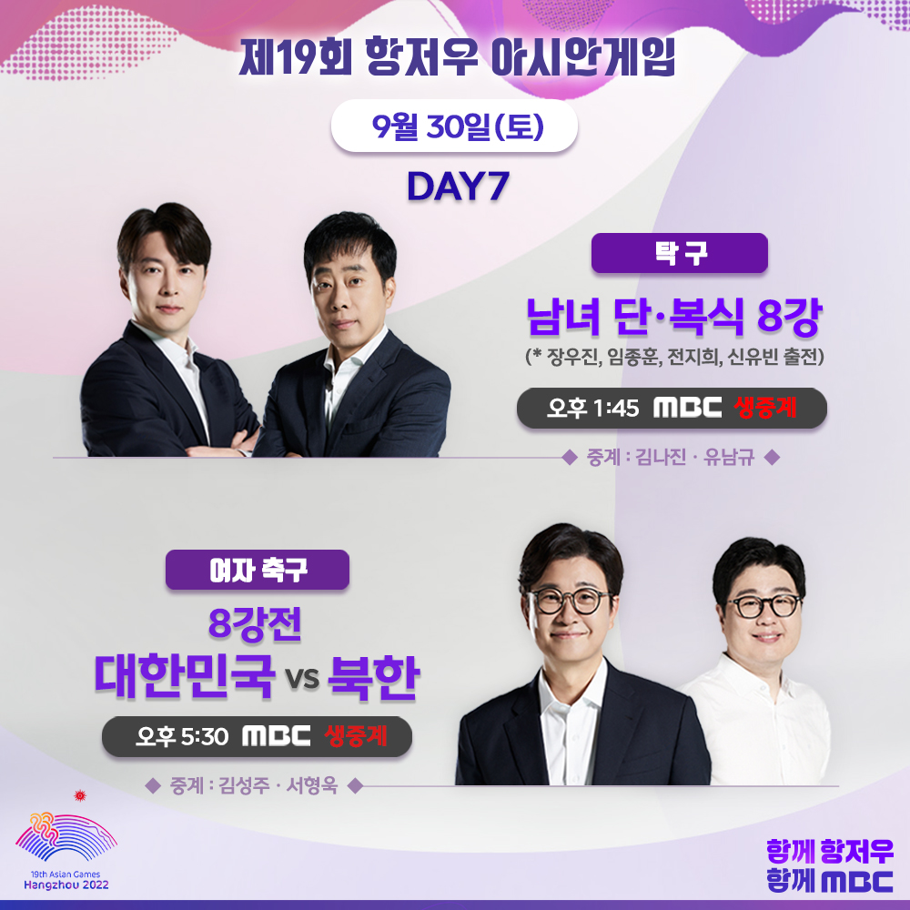 [제19회 항저우 아시안게임] 대회 7일 차! MBC에서 반드시 챙겨봐야 할 대한민국 경기는? |