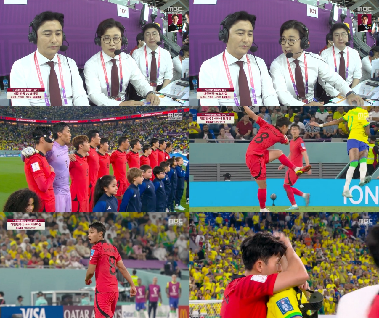 [MBC 2022 카타르월드컵] 자랑스러운 대한민국, 끝까지 잘 싸웠다! ‘세계 최강’ 브라질 상대로 포기하지 않는 투혼 발휘! MBC 안정환 해설위원, “인간의 한계 뛰어넘을 정도로 최선을 다한 선수들...너무 잘 싸웠 |